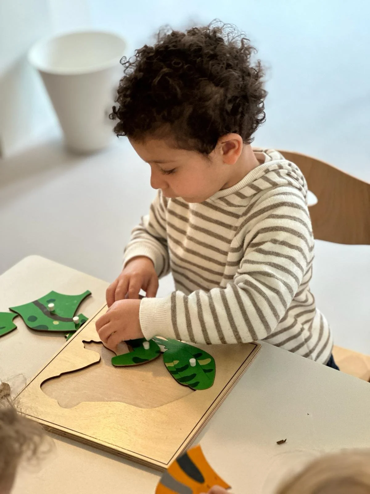 Les enfants pratiquent tous les jours des activités de la vie quotidienne qui les aident à développer leur concentration, leur motricité fine, leur persévérance et leur capacité de planification.